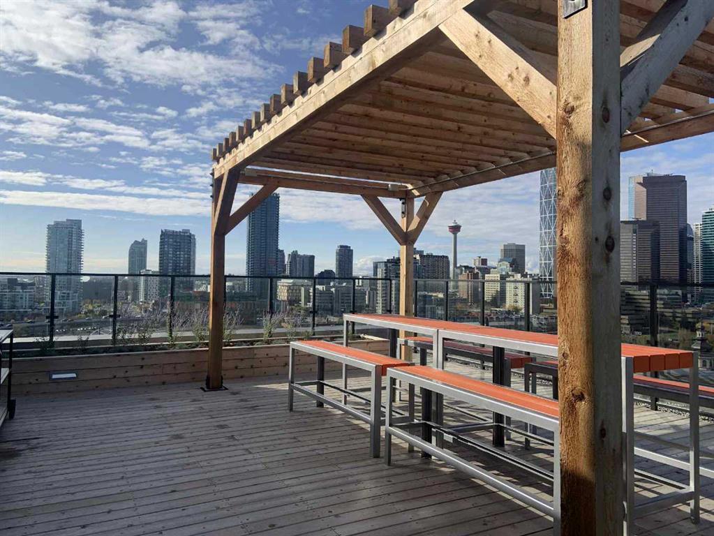This stunning top-floor Northwest corner condo in the sought-after Era building offers 640 sq. ft. of stylish living with 2 bedrooms, 2 bathrooms, and sweeping downtown views. Flooded with afternoon light, it’s an ideal space for contemporary urban living in the heart of Bridgeland. The bright, open layout seamlessly connects the kitchen, dining, and living areas, creating a space that’s perfect for entertaining or enjoying a cozy night in. Large windows frame the skyline and fill the home with natural light, enhancing its airy feel. The kitchen blends style and function with sleek quartz countertops, stainless steel appliances, ample cabinetry, and a versatile island that provides extra prep space and casual seating. Whether you’re hosting or grabbing a quick bite, this kitchen delivers. Both bedrooms are generously sized for comfort and flexibility. The primary retreat features a private ensuite with modern fixtures, while the second bedroom can serve as a guest room, home office, or additional living space. The second full bathroom is equally well appointed with contemporary finishes and quality details. Residents of Era enjoy premium amenities including a rooftop terrace with skyline views, secure underground parking, and a pet-friendly environment. Located in the vibrant community of Crescent Heights, adjacent to Bridgeland, this home offers unmatched walkability. Step outside to find trendy cafés, acclaimed restaurants, boutique shops, and the Bow River pathway system. Downtown Calgary is just minutes away, making this location as convenient as it is exciting. Whether you’re looking for a sun-filled urban home or a smart investment in one of Calgary’s most desirable neighbourhoods, this condo offers the perfect balance of comfort, design, and location. Don’t miss your chance to make it yours.