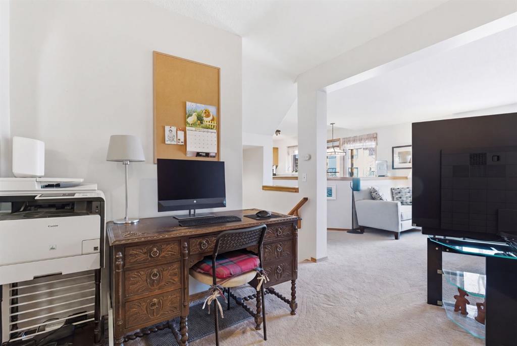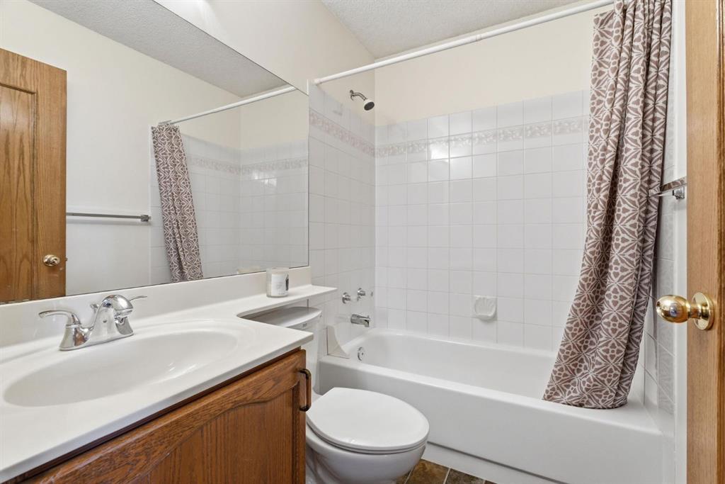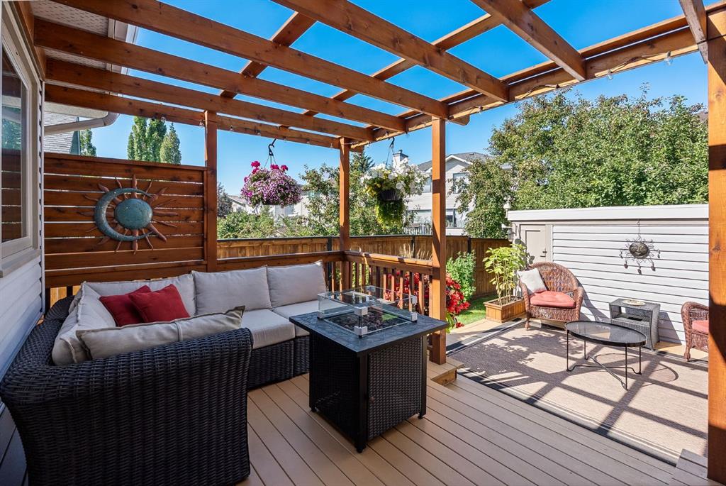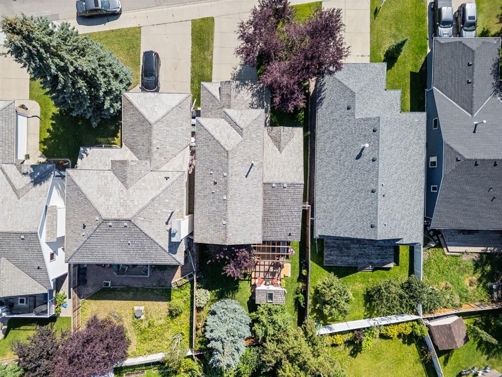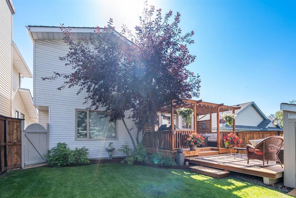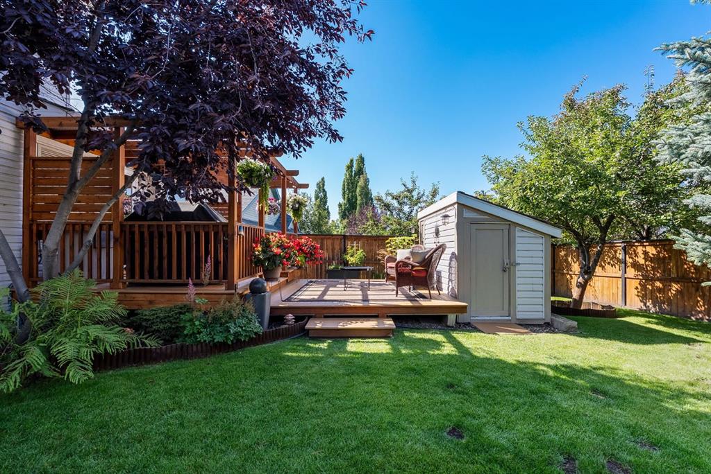 Welcome to this beautifully maintained home! Upon entering, you'll be greeted by soaring vaulted ceilings, modern light fixtures, and a stunning grand staircase. The formal living room features large windows draw in the natural light, while a well-sized dining room awaits just beyond. Adjacent to these areas is the “U-shaped” kitchen, complete with a corner pantry for extra storage, solid oak cabinets, and a sink that overlooks the gorgeous backyard. The kitchen flows into the breakfast nook with direct access to your private outdoor space. Outside is a true oasis, featuring a two-tier cedar deck with privacy screens, an outdoor shed, and an irrigation system—all enhanced by strategically placed landscape lighting and surrounded by mature trees. The main floor also includes a spacious living room, highlighted by a gas fireplace with custom built-ins and stone accents. Additionally, there is a den, a conveniently located main floor laundry room and a private powder room. Upstairs, the large primary bedroom boasts a walk-in closet and a spa-inspired ensuite with a separate shower, a luxurious jetted tub, and elegant stone counters. Two more generously sized bedrooms share a well-appointed four-piece main bath, also featuring stone counters. Enjoy the comforts of air conditioning, convenience of a smart thermostat, smart garage door, safety of security cameras and NO POLY B! Douglasdale Estates is a well-established family community with easy access to shopping, dining, Douglasdale Golf Club, parks, tennis courts, and scenic walking and biking paths that connect to the Bow River pathway system and Fish Creek Park. With quick access to Deerfoot Trail, commuting within the city is a breeze. The pride of ownership is evident throughout this home—schedule your showing today!