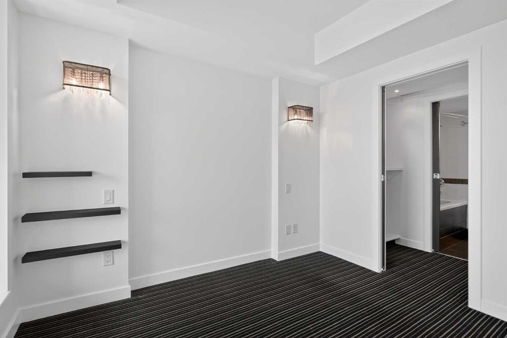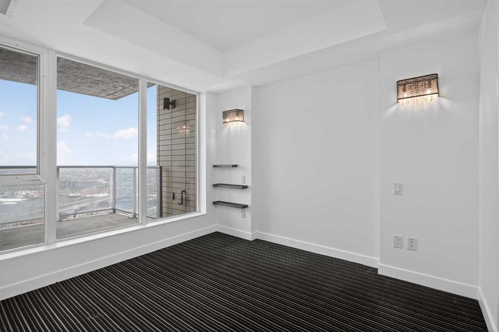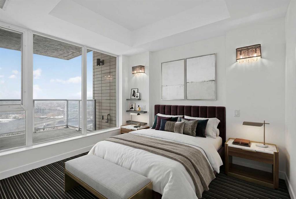 Welcome to Solaire, where elevated design meets an unbeatable Eau Claire lifestyle. Perched on the 16th floor, this beautifully upgraded 1 bedroom, 1 bathroom residence offers a refined, boutique luxury feel the moment you step inside. Floor to ceiling WINDOWS flood the space with natural light, creating a bright and open atmosphere that feels both modern and inviting, while showcasing uninterrupted west facing views. The thoughtfully designed layout seamlessly connects the kitchen, dining, and living areas, perfect for entertaining guests or enjoying a quiet night in. The kitchen is finished with high end cabinetry, sleek surfaces, and premium Bosch appliances, delivering both performance and a clean, sophisticated aesthetic. The living area is anchored by a cozy GAS FIREPLACE, adding warmth and ambiance, making it the perfect place to unwind while taking in the incredible views. The bedroom is a true retreat, featuring elegant glass French doors that enhance the open feel while still offering privacy, along with a walk through closet that leads into a well appointed full bathroom. Every detail has been carefully considered to maximize both comfort and flow. What truly sets this home apart are the west facing views, offering breathtaking sunsets over the MOUNTAINS and the BOW RIVER, a rare combination that brings a sense of calm and escape right into your everyday life. This unit also includes UNDERGROUND TITLED PARKING, adding everyday convenience and long term value in a premier downtown location. Step outside and you’re immediately connected to everything that makes Eau Claire one of Calgary’s most desirable communities, from the Bow River pathways and green spaces to local cafés, boutique shops, and some of the city’s best restaurants, all just moments from your front door. Whether you’re a professional looking for a polished downtown residence, an investor seeking a premium rental in a high demand location, or someone who simply values lifestyle and convenience, this is a rare opportunity to own a standout unit in one of the city’s most sought after buildings. Opportunities like this, with this level of finish, view, and location, rarely come to market at this price point.