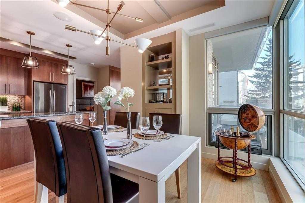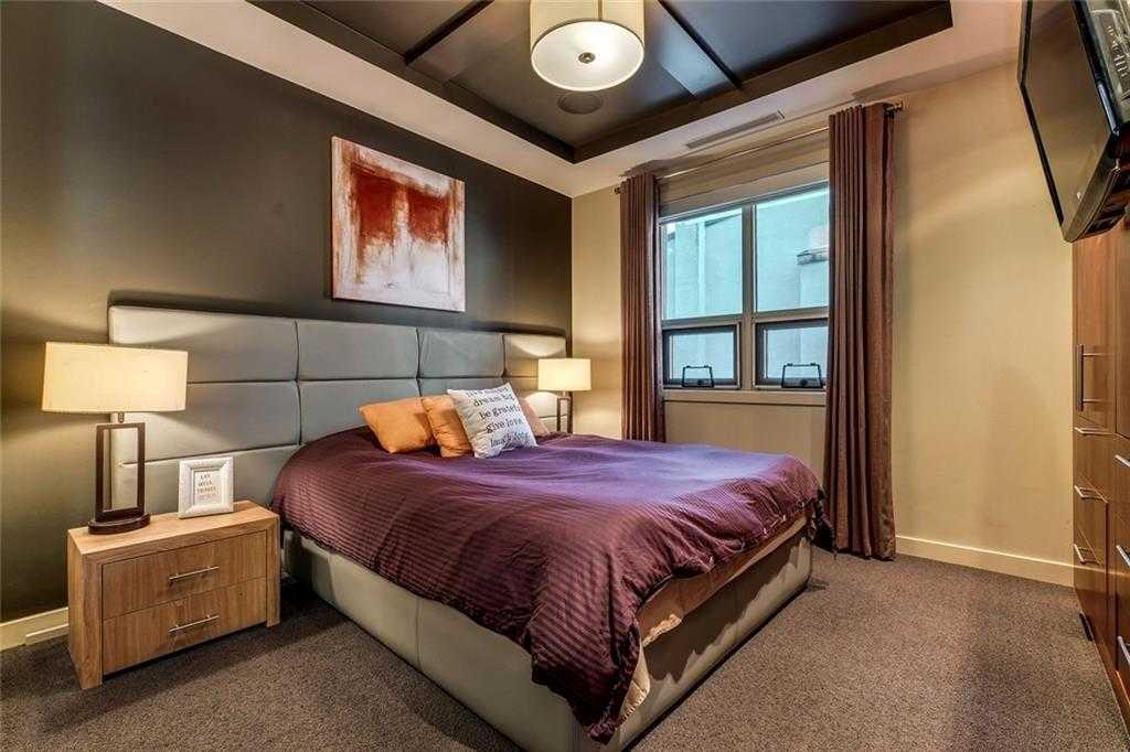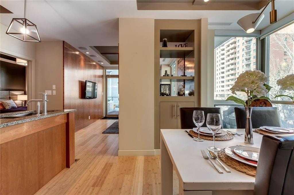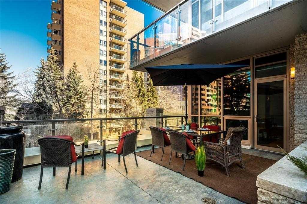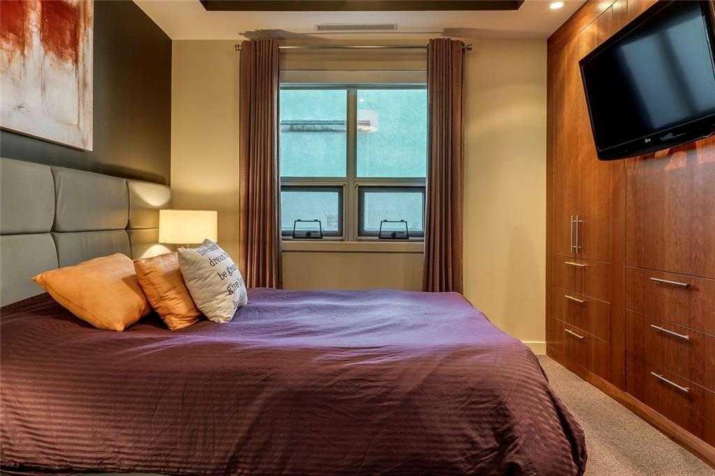 Located in the heart of Eau Claire, Churchill Estates is a boutique executive building known for its quality construction, privacy, and upscale finishes. This corner two-bedroom, two-bathroom unit offers an exceptional layout just steps from the Bow River pathways, restaurants, shops, and downtown amenities. The interior features engineered hardwood flooring, custom millwork, coffered ceilings, and solid core doors, along with built-in Dolby surround sound and enhanced soundproofing throughout. The open-concept living and dining area is filled with natural light from floor-to-ceiling windows and connects seamlessly to the kitchen. The kitchen is well-appointed with granite countertops, full-height maple cabinetry with soft-close features, a large island, upgraded stainless steel appliances, and a gas range—designed for both everyday use and entertaining. The primary bedroom accommodates a king-sized bed and includes custom built-in storage. The ensuite offers heated floors, double vanities, a soaker tub, and a steam shower. The second bedroom is spacious and located near a three-piece bathroom, making it ideal for guests or a home office. A standout feature is the expansive private patio, offering over 400 square feet of outdoor space—rare for condo living and ideal for entertaining or relaxing. Additional features include two titled heated underground parking stalls and titled storage. The building offers concierge service, a car wash bay, and comprehensive security with 24/7 personnel, key-card access, and surveillance. Churchill Estates combines a premium location with a well-managed, secure building and high-end interior finishes—an excellent option for buyers seeking low-maintenance luxury in Eau Claire.