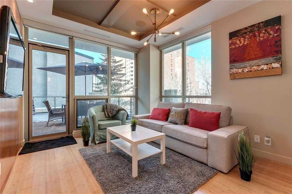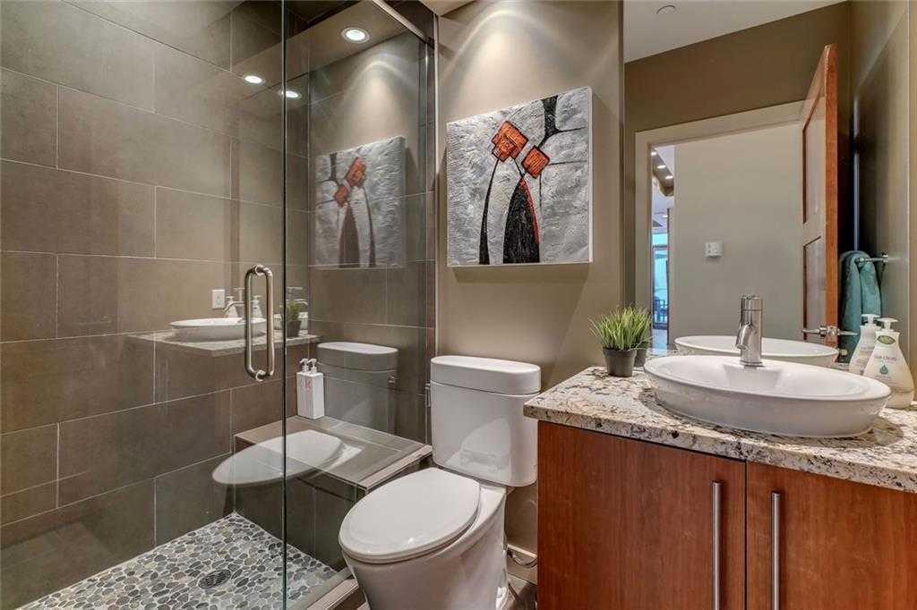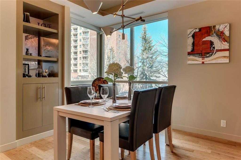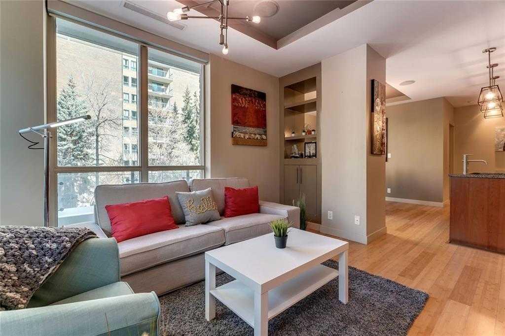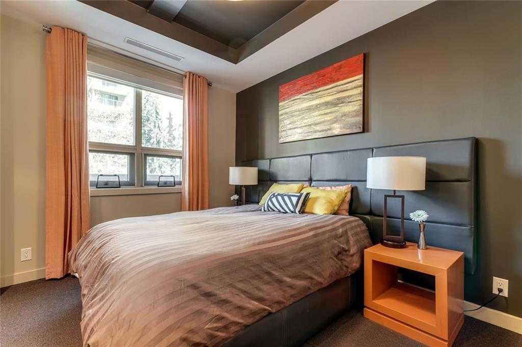 Located in the heart of Eau Claire, Churchill Estates is a boutique executive building known for its quality construction, privacy, and upscale finishes. This corner two-bedroom, two-bathroom unit offers an exceptional layout just steps from the Bow River pathways, restaurants, shops, and downtown amenities. The interior features engineered hardwood flooring, custom millwork, coffered ceilings, and solid core doors, along with built-in Dolby surround sound and enhanced soundproofing throughout. The open-concept living and dining area is filled with natural light from floor-to-ceiling windows and connects seamlessly to the kitchen. The kitchen is well-appointed with granite countertops, full-height maple cabinetry with soft-close features, a large island, upgraded stainless steel appliances, and a gas range—designed for both everyday use and entertaining. The primary bedroom accommodates a king-sized bed and includes custom built-in storage. The ensuite offers heated floors, double vanities, a soaker tub, and a steam shower. The second bedroom is spacious and located near a three-piece bathroom, making it ideal for guests or a home office. A standout feature is the expansive private patio, offering over 400 square feet of outdoor space—rare for condo living and ideal for entertaining or relaxing. Additional features include two titled heated underground parking stalls and titled storage. The building offers concierge service, a car wash bay, and comprehensive security with 24/7 personnel, key-card access, and surveillance. Churchill Estates combines a premium location with a well-managed, secure building and high-end interior finishes—an excellent option for buyers seeking low-maintenance luxury in Eau Claire.