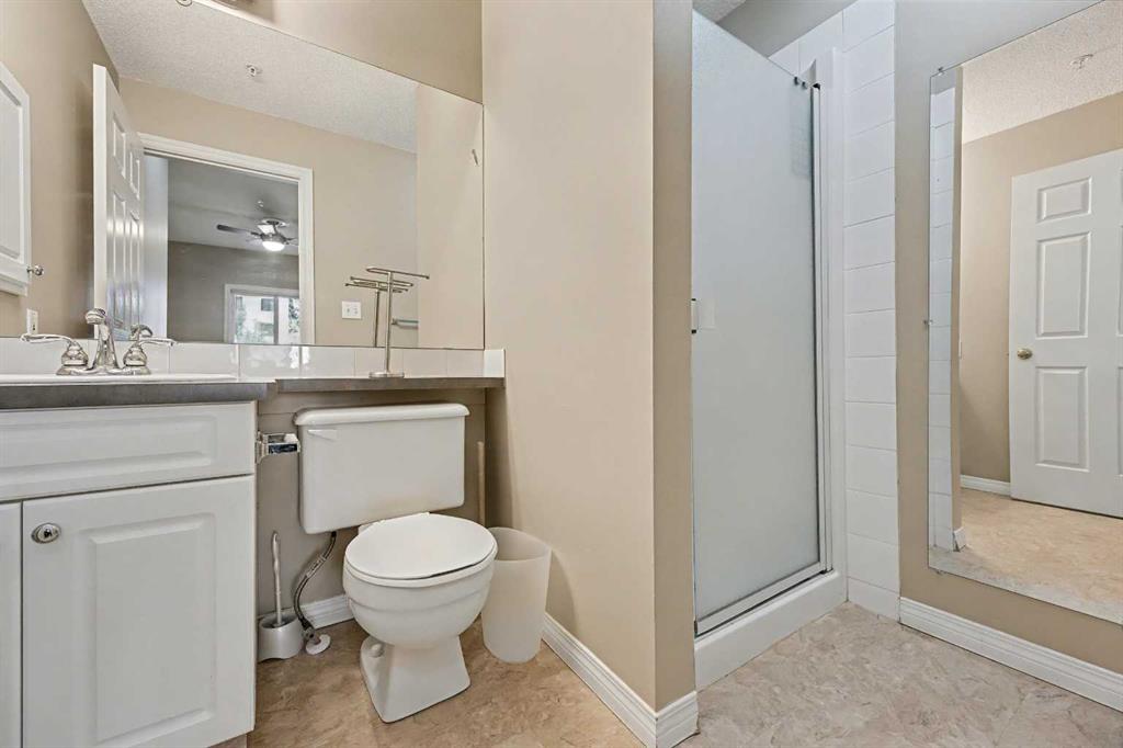 The primary bedroom includes a walk-in closet and private 3-piece ensuite, while the second bedroom is positioned on the opposite side of the unit—ideal for guests, a roommate, or a home office.