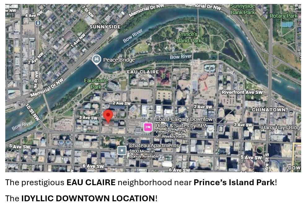 This building offers amenities such as a party room, visitor parking and secured underground parking. Located only steps away from the Bow River pathways, Prince’s Island Park, fine dining, shopping, and entertainment.