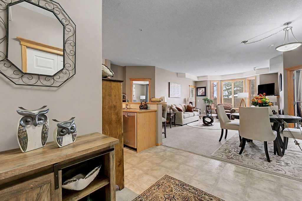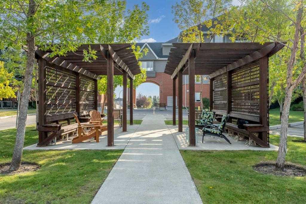 Come home to this highly sought after development of Sierras of Evergreen! Ideally located offering a walk across the street to access Sobeys, Starbucks, Tim’s, banks, restaurants, Shoppers Drug Mart, medical clinic & more! A nearby, major bus route & proximity to the LRT make this ideal for those that want use transit to their destination. This is a resort style development offering unparalleled amenities: an indoor pool, hot tub, fitness centre, theatre room, workshop, games & craft rooms, library, pool table & shuffleboard, wine making room, car wash, guest suites & more! The unit is ideally located on the main floor of building B. Step out onto your private patio surrounded by trees & lush shrubs then off you go without needing to use the common hallways or elevator. Perfect for pet owners who walk their four-legged friends! This 2-bedroom 2 bath unit is air conditioned, has a spacious layout and enjoys loads of natural sunshine through numerous windows. The spacious Great room with cozy fireplace is open to the kitchen offering ample counterspace, cabinets, stainless steel appliances & a sit up breakfast bar. The primary bedroom enjoys its private ensuite bathroom & roomy walk-in closet. The titled parking stall & assigned storage unit are close to the elevator. Condo fees include heat, electricity, water/sewer. Come enjoy the good life!