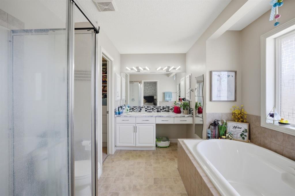 Jayman Built Home ! Charming Home in the Beautiful Mountain Community of Kincora. Nestled in the scenic and sought-after Kincora community, this stunning home offers a perfect blend of nature and comfort. Backing onto an environmental reserve with a wet pond and surrounded by extensive walking paths, you'll enjoy peaceful views and access to outdoor serenity right at your doorstep. Upstairs, you'll find three spacious bedrooms, including a luxurious master bed with a walk-in closet and a private ensuite. A bright and open bonus room offers extra living space for family gatherings or a home office, and a nice view from bonus room. The main floor features upgraded cabinets, granite countertops, and a cozy gas fireplace, making it both functional and stylish. Added value comes from a fully separate one-bedroom basement suite (illegal) with its entrance through the garage, separate laundry — perfect for rental income or extended family use. Roof and gutter replaced in 2025. With a double attached garage and all major shopping amenities just minutes away, this home combines natural beauty with everyday convenience, bus stop just in front of the house.