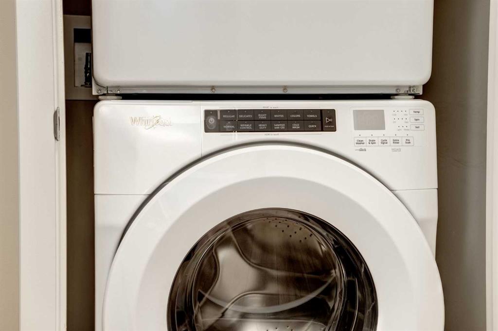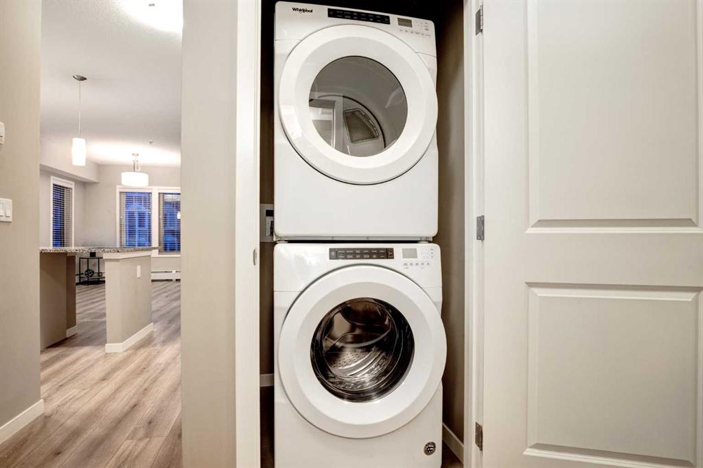 Stepping inside the Foyer, you’re greeted w/NEUTRAL Colours, 9 FT CEILINGS + UPGRADED Vinyl Plank Flooring that leads you down the hall; 4-PC Bathroom sits next to the 2nd GOOD-SIZED Bedroom - this split-bedroom layout is IDEAL for GUESTS, ROOMMATES, or a PRIVATE HOME OFFICE - w/a stacked WASHER/DRYER conveniently located across from the bathroom. Enjoy the OPEN-CONCEPT layout filled w/NATURAL LIGHT from your SOUTH + WEST FACING WINDOWS, + discover an array of UPGRADED FEATURES that truly set this home apart.