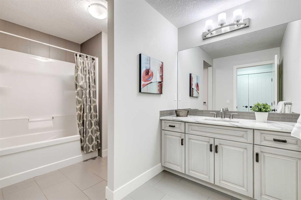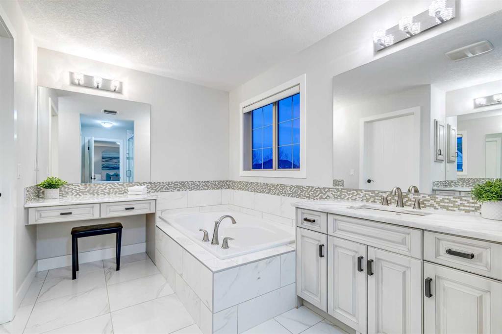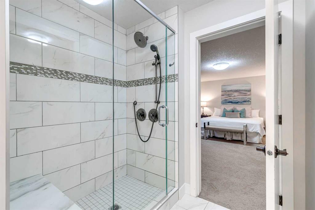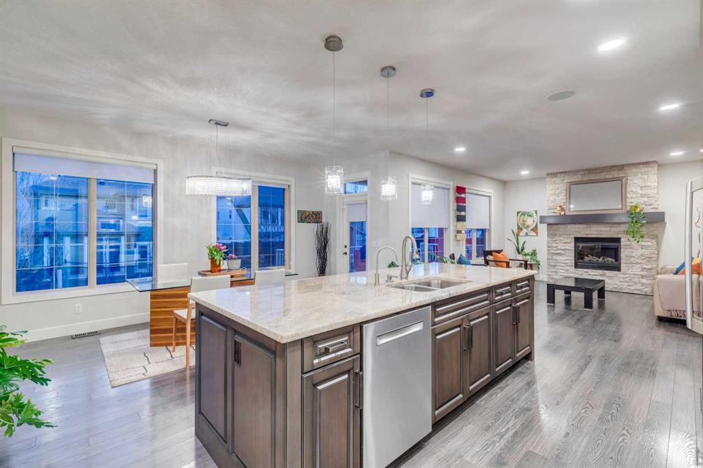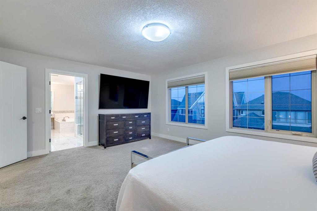 Welcome to this exceptional triple garage home offering space, function, and standout features at every turn. A charming front porch leads into a spacious entryway, setting the tone for the thoughtful layout. Just off the entrance, a private office with French doors provides the perfect work-from-home setup. The main living area is warm and inviting, anchored by a large gas fireplace and seamlessly connected to a beautifully designed kitchen featuring granite countertops, modern appliances, extensive cabinetry, and a massive island ideal for entertaining. The walk-through pantry offers incredible storage and convenient access to the finished heated triple garage and a nearby half bath. The bright dining area is framed by large windows and opens onto a multi-level deck, designed for both relaxation and entertaining, complete with a pergola-covered hot tub area and additional storage below. Upstairs, a generous bonus room creates flexible living space, while double doors lead to a spacious primary retreat with a luxurious ensuite boasting a soaking tub, walk-in shower, and direct access to the walk-in closet. The upper level also includes a well-appointed laundry room with built-in storage and counters, along with three additional bedrooms and a full bathroom, all offering ample space, natural light, and large closets. The fully finished basement adds over 1,100 sq ft of living space, including two more bedrooms with walk-in closets, a full bathroom, and a large open area perfect for recreation or guests. Additional features include air conditioning, laminate flooring, two furnaces, a water softener, and built-in vacuum. Located in the vibrant lake community of Mahogany, this home benefits from private beach access, excellent nearby amenities, quick access to the Mahogany Beach Club, and a street that leads directly toward the lake. Residents enjoy year-round activities, beautiful pathways, and one of Calgary’s most sought-after community atmospheres.