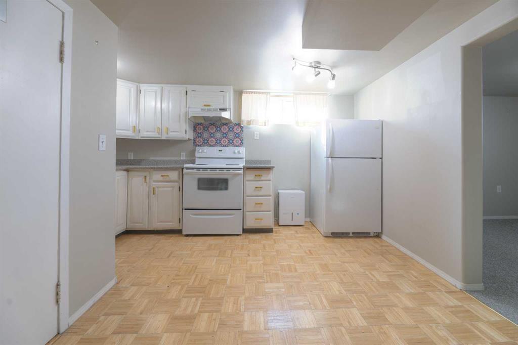 Refrigerator and Electric Stove in Basement |