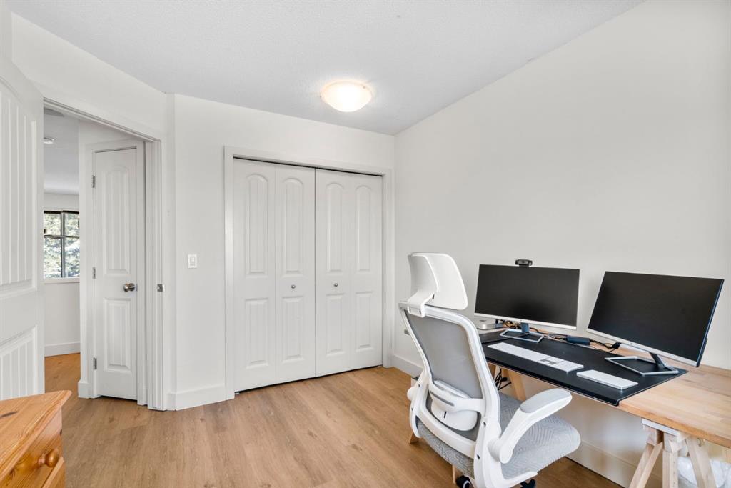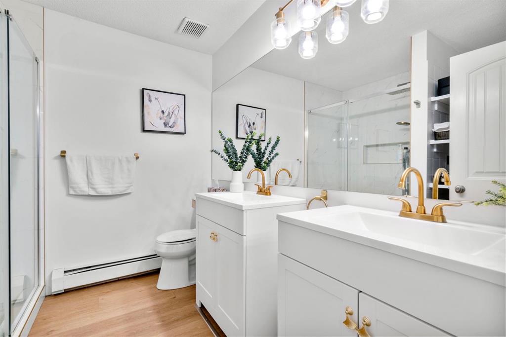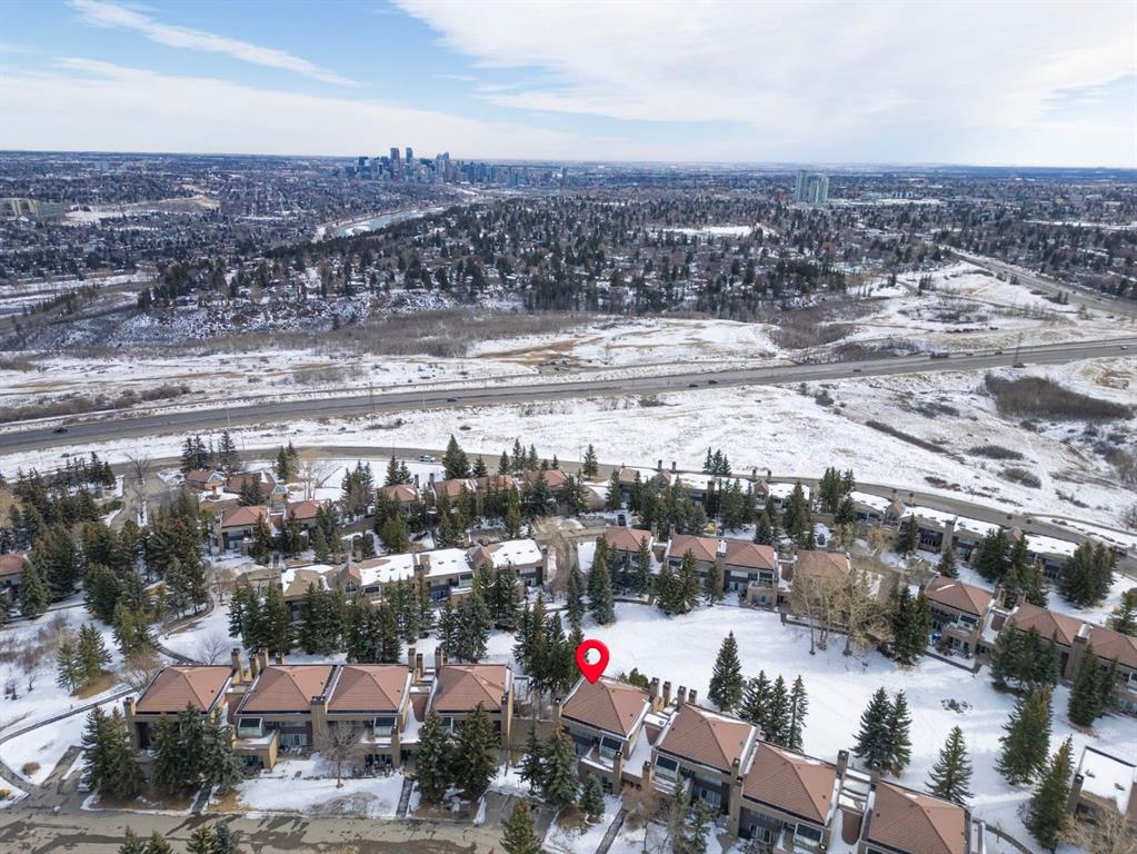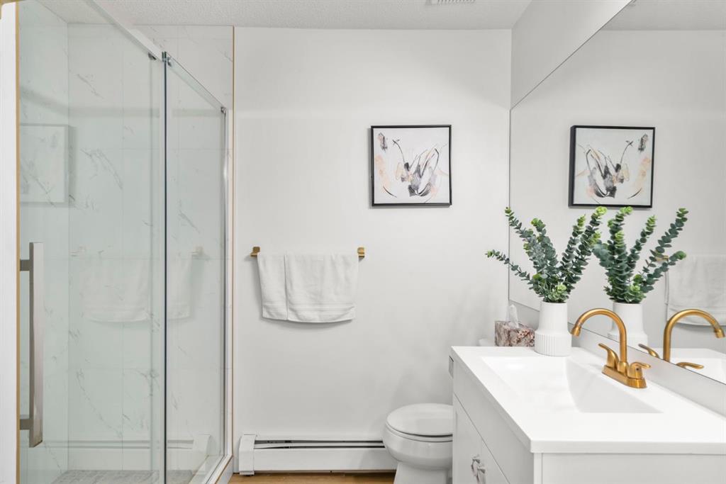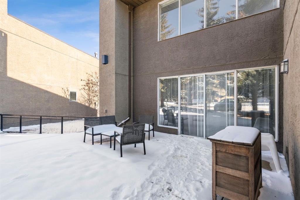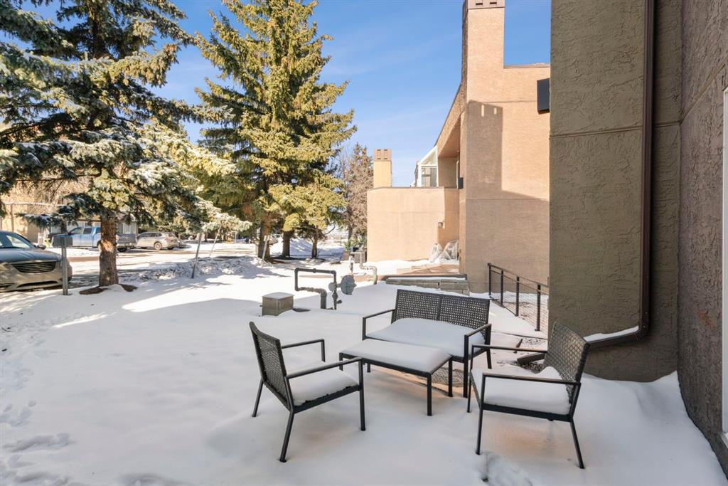 Welcome to this beautifully updated loft-style condo in The News from Broadcast Hill located in Patterson - a mature, desirable west-side neighbourhood known for it’s quiet streets, extensive pathways and convenient access to downtown. Offering over 1,000 sq. ft. of living space, this 2-bedroom, 1.5-bathroom home features a bright and airy layout with soaring high ceilings and large windows that fill the space with natural light. Fresh, modern updates make this unit completely move-in ready: the entire home was professionally painted in 2022, new vinyl flooring was installed throughout in 2022, and the main bathroom was fully renovated in 2023. As you step inside, you’ll find a convenient powder room and in-suite laundry, with the kitchen down the hallway on the right. Bright and inviting, it features granite countertops with plenty of counter space and cabinets, a newer Bosch dishwasher, a window over the sink, a pantry and a peninsula with seating — great for casual dining. The adjacent dining area opens onto a spacious east-facing patio surrounded by mature trees with downtown views, offering beautiful morning sunlight and a peaceful outdoor setting for coffee or meals. The living room with high ceilings is open and airy, centered around a cozy wood-burning fireplace and offering access to a second, west-facing patio. Upstairs, you’ll find two well-sized bedrooms, a linen closet, and the beautifully renovated 4-piece bathroom complete with double vanity, an oversized walk-in shower, and added built-in storage shelving. This unit also includes underground parking and a separate storage locker for extra convenience. Pets are welcome with board approval. Residents enjoy exceptional amenities including an indoor pool, hot tub, fitness centre, racquet courts, party room, visitor parking, and scenic walking paths throughout the complex. Condo fees include all utilities except electricity, adding excellent value. Short commute to downtown, shopping, transit, parks, and schools — and only a short drive to WinSport - this home offers an ideal balance of comfort, updates, and location in one of Calgary’s most desirable, tree-lined communities. Book your private showing today!