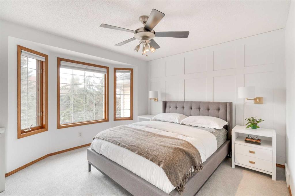 Upstairs, you'll find a very large primary bedroom with a custom feature wall, a second well-sized bedroom, and an updated 4-piece bathroom complete with a large corner soaker tub. A bright loft area offers the perfect spot for a home office, reading nook, or additional family lounge space.