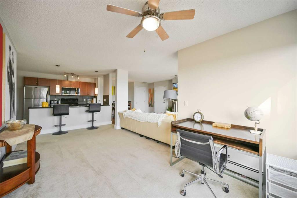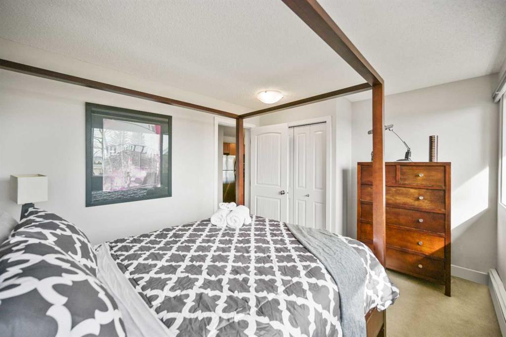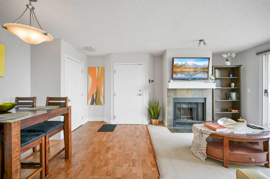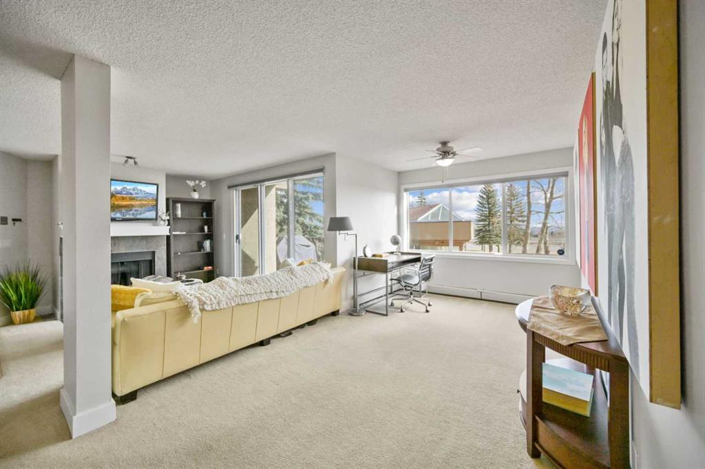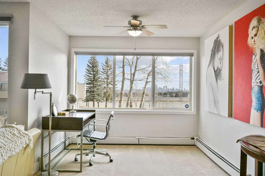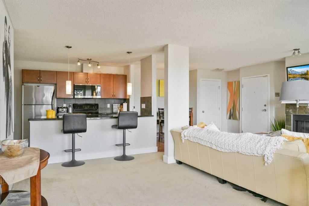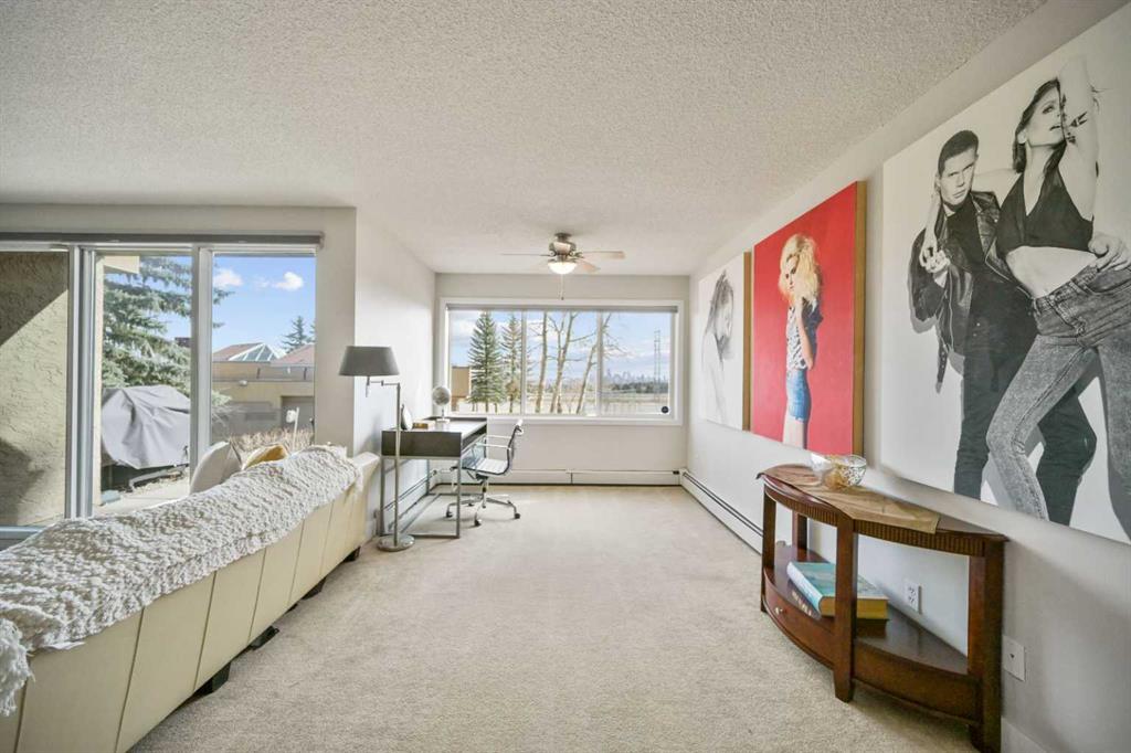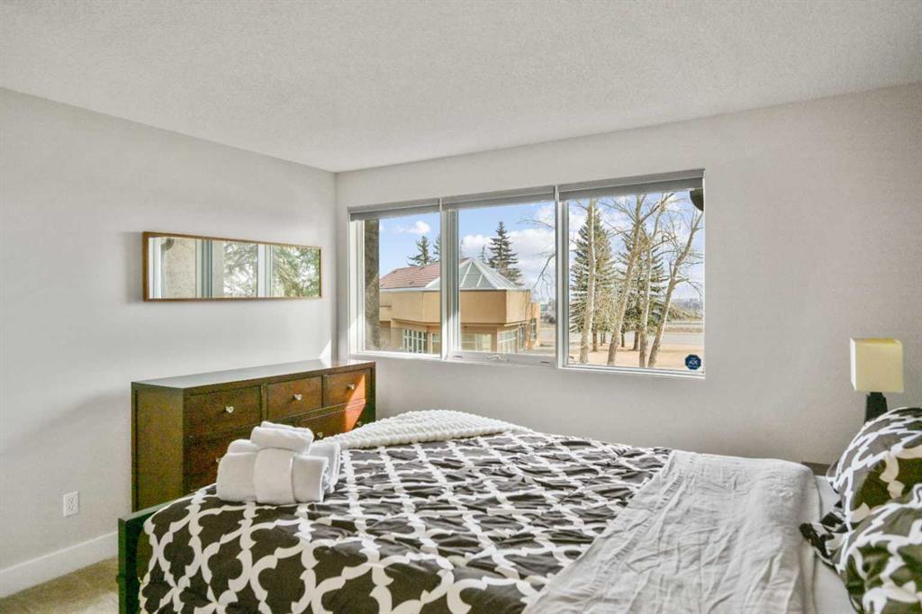 Click brochure link for more details. DEVELOPER SHOW SUITE | FULLY FURNISHED | 1,000+ SQ FT | UNOBSTRUCTED CITY VIEWS | TURN KEY INVESTMENT Step inside the developer’s former show suite, ideally located in the highly sought after community of The News at Broadcast Hill in the prestigious southwest neighbourhood of Patterson Heights. This ground floor, 2 bedroom, 2 bathroom walk out unit offers over 1,000 sqft of living space with unobstructed city skyline views from every room. Opportunities like this are rare, combining location, size, and value in one offering. The home has been fully upgraded and freshly painted, featuring brand new appliances and window coverings. Highlights include two full bathrooms, a spacious primary bedroom with walk in closet, in suite washer and dryer, underground parking, a large south facing patio, and a cozy wood burning fireplace. This unit is truly turn key and comes fully furnished with high end furnishings and curated artwork throughout. Whether you are looking for a move in ready home or a strong long term rental investment, this property delivers. Just bring your suitcase. Originally held as the developer’s prized show suite, this home includes premium upgrades and one of the best locations within the community, just steps from its exceptional amenities. Residents enjoy access to an indoor pool, hot tub, fitness centre, tennis and basketball courts, and an event space for private gatherings. Set on 17 acres of private land, this pet friendly community offers a unique lifestyle just 10 minutes from downtown Calgary. Enjoy peaceful walks, mature surroundings, and the soothing sound of the nearby waterfall just outside your door. This is the first time this unit has been offered for sale since its original purchase from the developer. A rare opportunity to own a fully furnished, show suite quality home in one of Calgary’s most desirable southwest communities