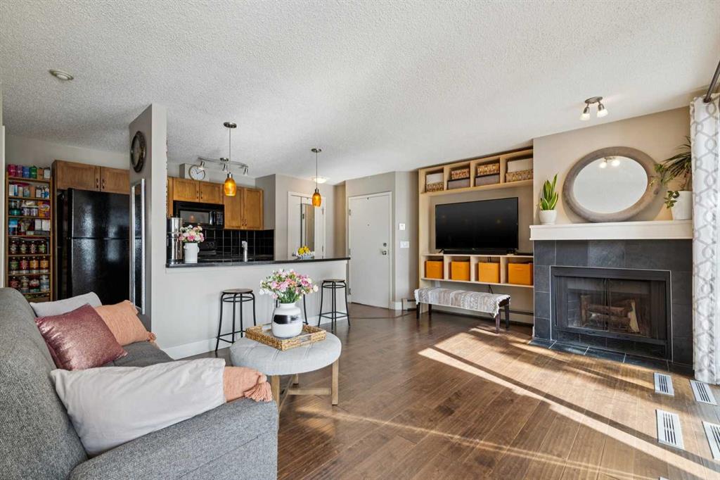 Welcome to #3 121 Village Hts SW, located in the established News on Broadcast Hill complex. Located on the second-level, this 2 bedroom space is super cute. The main area features an open kitchen with quartz counters and an island eating bar, which overlooks the living room with a wood burning fireplace and the dining area that can be used as an office or second seating area if you don’t need a formal eating space. New engineered hardwood flooring were installed in 2019, and a new dishwasher in 2020. In 2022, the bedroom windows were replaced with new Lux units, and being on the second level, the large balcony is extremely private. The primary bedroom features a 3 piece ensuite, and there is a main 4 piece bath for the second bedroom and guests. Parking is in the heated parkade that is on the same level as this home, so you never need to use stairs if you don’t want to. The building was upgraded with the Telus optical network, providing excellent high-speed internet. The on site facilities are world class with an indoor pool, hot tub, gym, tennis courts, and a community hall available for event rentals. Another bonus? It’s a pet-friendly complex, and condo fees cover heat, water, insurance, landscaping, snow removal, and waste removal - leaving electricity as your only utility bill. For more details, and to see our 360 virtual tour, click the links below.