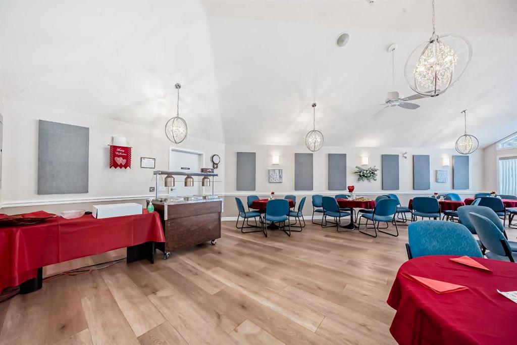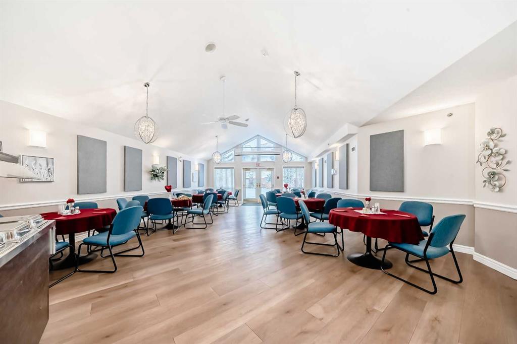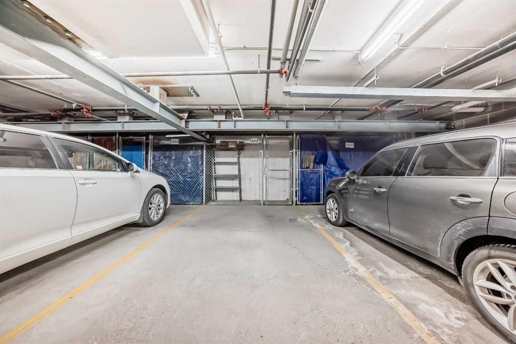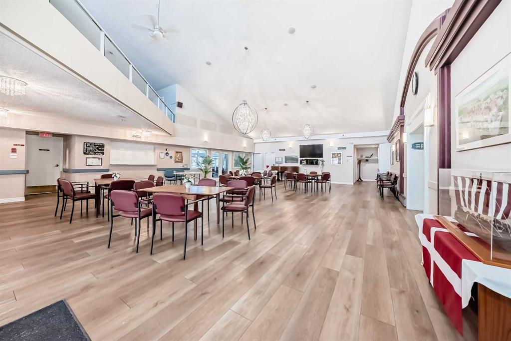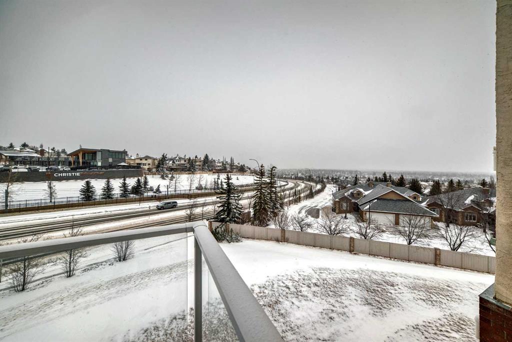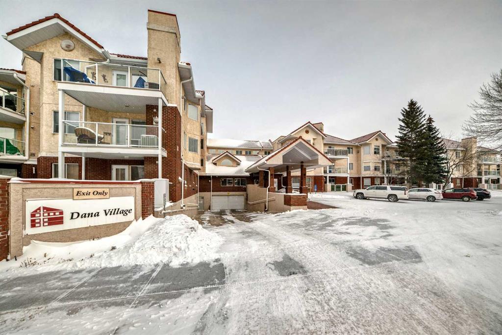 A Fantastic Condo in the desirable Dana Village, one of the nicest 55+ complexes in Calgary! Did you notice the fabulous view of Downtown? Open design that is bright, and easy to navigate, including a Full Kitchen with lots of Storage and an enclosed Pantry. The Master Bedroom has a Walk-In Closet and an Ensuite Bathroom with mobility assists already installed. The second bedroom is a good size with a 3-Piece bathroom nearby. The Laundry Room is spacious with full sized Washer & Dryer. Enjoy the gas fireplace on those winter days and the central Air Conditioning to keep you cool on the hot summer days! Heated, secure, assigned underground Parking Stall and a large Storage Unit that are both easily accessible from the Elevator. Super location with easy access to everything including the LRT, Sunterra Market, Westside Recreation Centre and lots of shopping, services, banking, restaurants, etc. Dana Village is professionally managed with entertainment areas, exercise, games, a large common kitchen for groups and a library too. This is a beautiful unit in a wonderful complex.