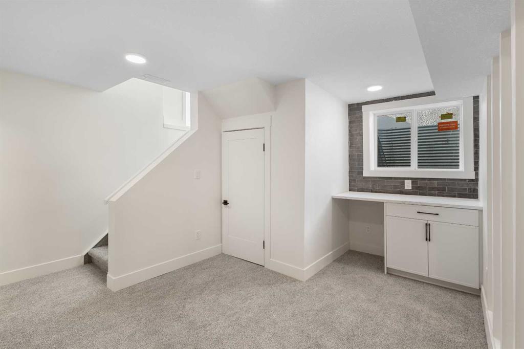 The private primary suite offers a retreat with a five-piece modern ensuite and a spacious walk-in closet. A second large bedroom and a four-piece bathroom complete this level. The fully developed basement significantly expands your living space, perfect for movie nights or guests, featuring a huge rec room, two more bedrooms, a sleek four-piece bath, and a brand-new washer and dryer. Enjoy seamless indoor-outdoor living with a landscaped backyard and the utility of a double detached garage. Located facing a green space and with quick access to the University of Calgary, Market Mall, and excellent transit, this home is where luxury meets location.
