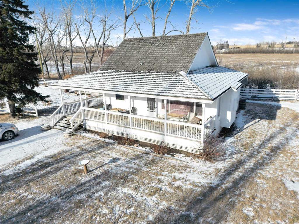 Fantastic opportunity to own 6.47 acres just minutes west of Okotoks on Highway 549. The beautifully maintained home under 1,000 sq. ft. sits in a peaceful, park-like setting with sweeping mountain views. Ideal for downsizers or those looking to build new while living on site. Easy access and close to shopping, schools, and recreation. this property offers excellent opportunity and long term value. Only 15 minutes SW of Calgary on all paved roads.