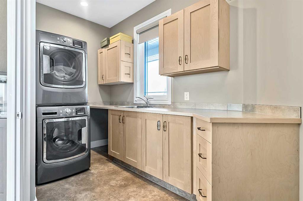 Convenience continues with a well-designed main floor laundry/mud room featuring a sink, ample cabinetry, and a nearby 2-piece bath, all with access to and from your TRIPLE attached finished heated garage.