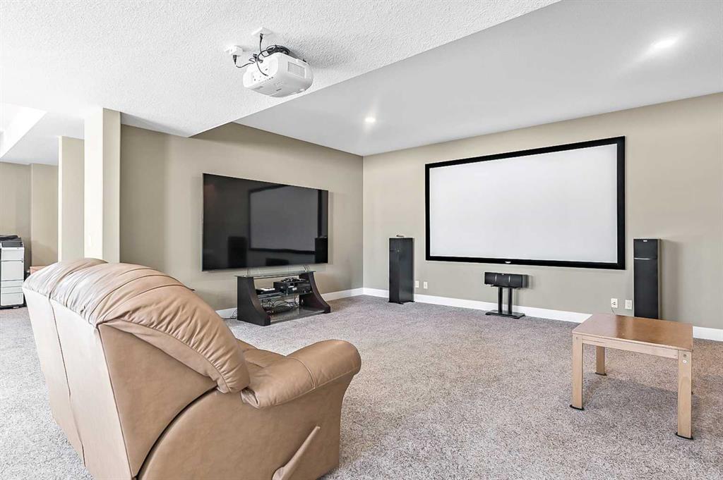 The fully finished basement is bright and inviting, thanks to oversized windows that flood the space with natural light. In-floor heating keeps things cozy all winter long. Enjoy movie nights in your dedicated theatre area (projector and audio equipment included), and take advantage of the expansive open layout. Need a fifth bedroom? The space is already prepped and ready to be completed. There’s also a snack station with sink and fridge, a 3-piece bathroom, and abundant storage throughout.