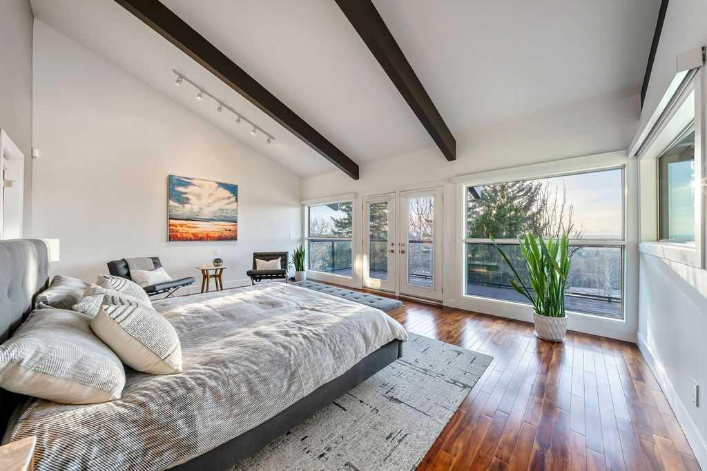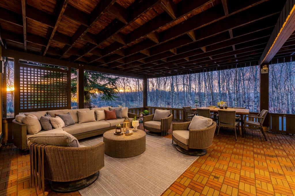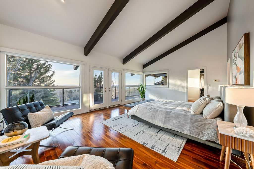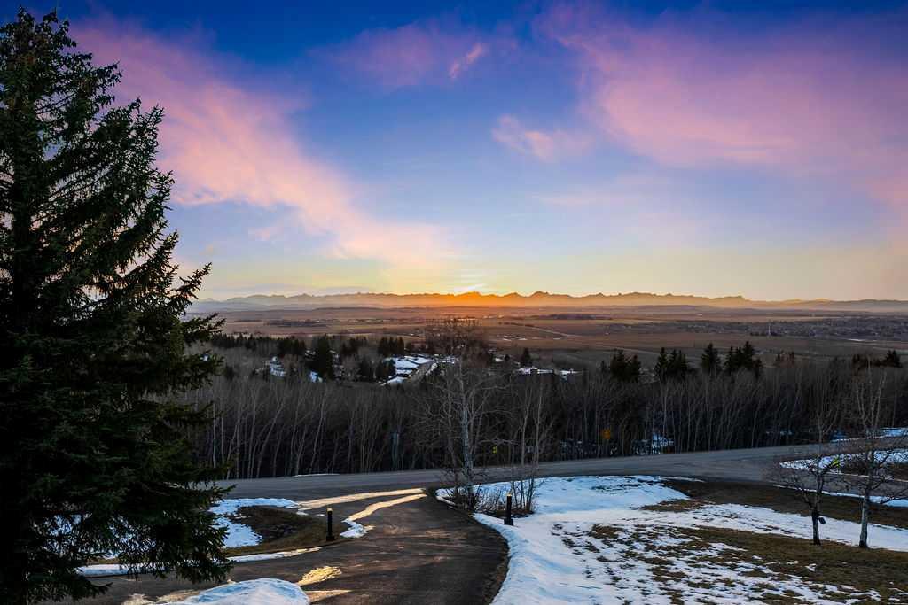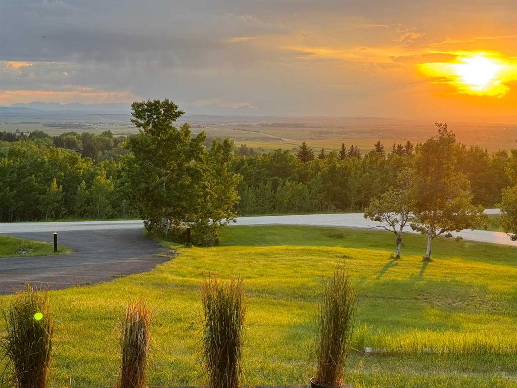 Perched on one of the most picturesque view lots in the area, this remarkable 5,497 total sq ft walkout bungalow home offers a rare opportunity to enjoy country privacy just minutes to Calgary and only 20 minutes to downtown. With quick access to shopping, restaurants & Stoney Trail, you can enjoy modern convenience without compromising the peace & charm of rural living. Built in an era when craftsmanship mattered and thoughtfully renovated over the years, this home beautifully blends timeless character with carefully selected modern updates. Follow the paved driveway to the heated triple car garage & appreciate the abundance of parking. Step inside and take a moment to absorb what surrounds you. From the new tile in the entrance & kitchen to the carefully curated finishes throughout, every detail has been considered. As you make your way to the main level, the views immediately take centre stage. The living room invites you to sit & stay awhile, offering breathtaking Rocky Mountain views, sweeping river valley vistas & unforgettable sunsets. The kitchen is positioned perfectly as the heart of the home, with views in every direction. Featuring Bosch appliances including a gas cooktop and warming drawer, it is a space designed for both everyday living & entertaining. The generous dining area ensures there is plenty of space for good food & good conversation. The family room is anchored by a striking wood burning fireplace that extends from the basement to the ceiling, creating warmth & presence throughout the home. A versatile bedroom on this level is ideal for a child’s room or a private home office. The main floor also offers a beautifully designed laundry room and a well appointed three piece bathroom for guests. The primary suite is exactly what you would hope for. Wake up to incredible views each morning and unwind in a space designed for comfort. The large walk-in closet offers ample storage, while the ensuite features a deep soaker tub, double sinks & a grand jetted shower. Notice the adorable ladder? Peek into the loft and let your imagination run wild, ideal for study, meditation, or a quiet retreat. The lower level continues to impress. A bright front flex room sits at grade level, adding to the functional living space. Three additional large bedrooms share two full bathrooms, while a generous games room and gym provide flexibility for growing families. With three brand new furnaces, shingles replaced in 2025 & two newer hot water tanks, and many other upgrades, this home is truly move in ready. Outdoor living spaces surround the home with endless possibilities, whether you envision a garden, a hockey rink or a place for a friendly family game of football. The school bus picks up at the end of the driveway, taking kids to the best public and private schools Calgary has to offer. A property like this is rarely offered, combining unforgettable views, thoughtful updates & an unbeatable location close to the city yet a world away.